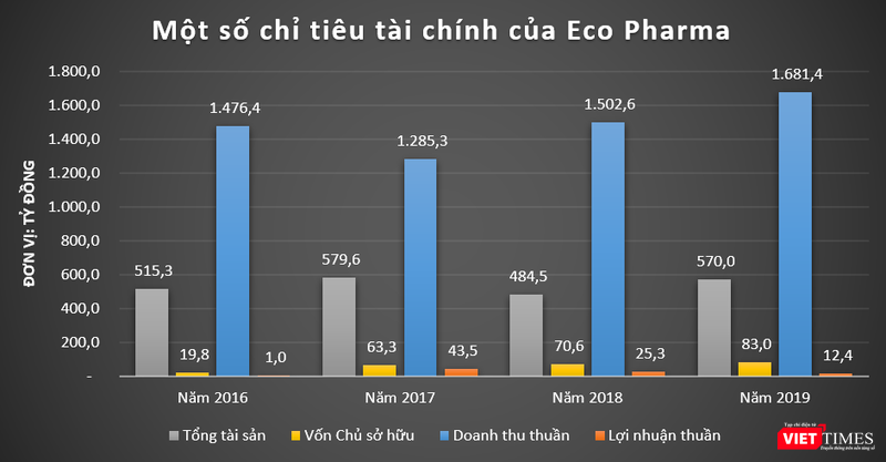 Trong 4 năm gần nhất, Eco Pharma ghi nhận sự tăng trưởng về doanh thu và liên tục báo lãi. Năm ngoái, Eco Pharma thu về 1.681,4 tỷ đồng, tăng 11,9% so với năm 2018. Điều đáng nói, nguồn doanh thu mà Eco Pharma đem lại mỗi năm đều gấp nhiều lần quy mô vốn chủ sở hữu.