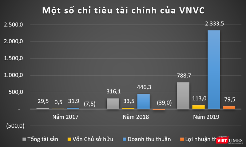 Bước sang năm 2019, VNVC ghi nhận sự bùng nổ về cả doanh thu và lợi nhuận. Cụ thể, công ty này ghi nhận doanh thu thuần đạt tới 2.333,5 tỷ đồng, cao gấp 5 lần so với năm 2018. Trong khi đó, hoạt động kinh doanh cũng chuyển sang có lãi với khoản lợi nhuận thuần ở mức 79,5 tỷ đồng. Hệ số lợi nhuận thuần trên vốn chủ sở hữu của VNVC lên tới 70,35%.
