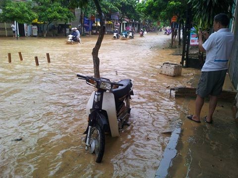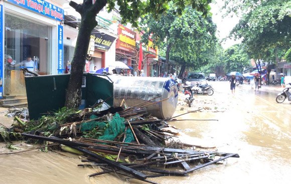 Anh Tuấn Nam chứng kiến sự việc cho biết: sau nhiều giờ mưa lớn, khi mở cửa nhà ra, tôi thấy nước cuồn cuộn trước cửa, chẳng mấy chốc cả thị trấn ngập chìm trong nước. Dòng nước hung dữ cuốn trôi hết tài sản, nhiều xe đạp điện, xe máy bị cuốn trôi...