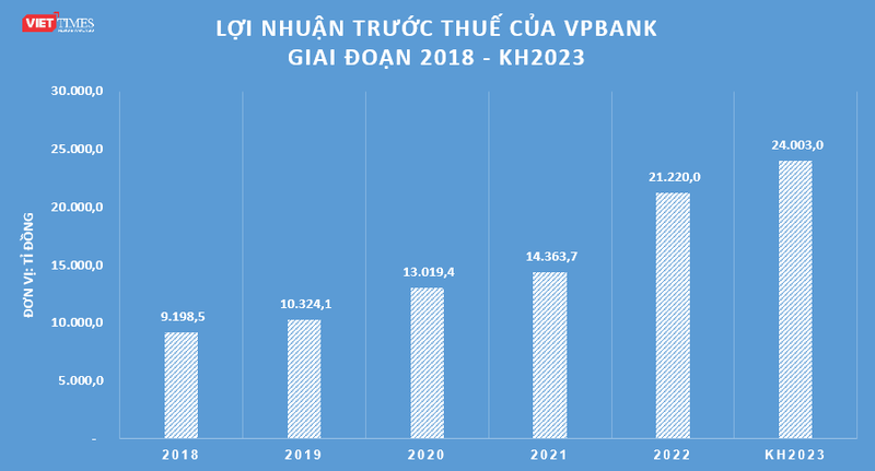 Cụ thể, ban lãnh đạo VPBank dự trình cổ đông xem xét thông qua mục tiêu lợi nhuận trước thuế năm 2023 ở mức 24.003 tỉ đồng, tăng 13% so với kết quả đạt được năm 2022.