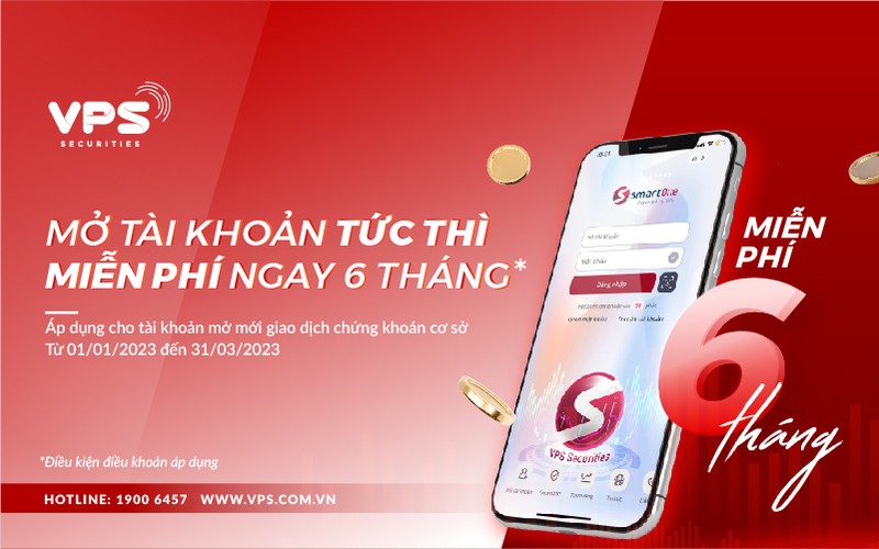 Công ty Cổ phần Chứng khoán VPS (VPS) tiếp tục triển khai chương trình “Mở tài khoản tức thì - Miễn phí ngay 6 tháng” cho khách hàng mở mới tài khoản và giao dịch chứng khoán cơ sở.