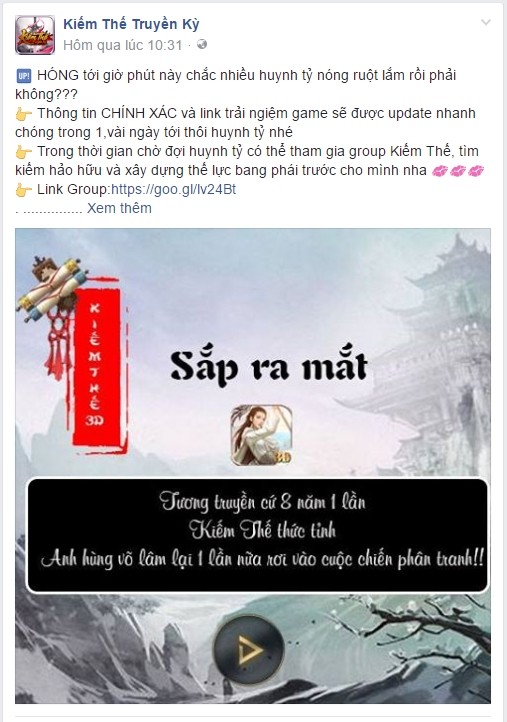Theo tìm hiểu của GameSao, fanpage Facebook Kiếm Thế Truyền Kỳ được tạo mới vào ngày 10/01 năm nay. Tuy nhiên, những hình ảnh đầu tiên được đăng tải lại liên quan trực tiếp đến Kiếm Vũ Vô Song - gMO nhập vai 2D lấy đề tài tiên hiệp của NPH Funtap và Kiếm Vũ Mobile – gMO MMORPG 3D khác cũng cùng thể loại kiếm hiệp của VTC Mobile?