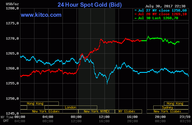 Trên phương thức giao dịch điện tử, tính đến thời điểm 9h41’ sáng nay (giờ Việt Nam), giá vàng giao ngay Comex đang đứng ở $1.268,70/oz.