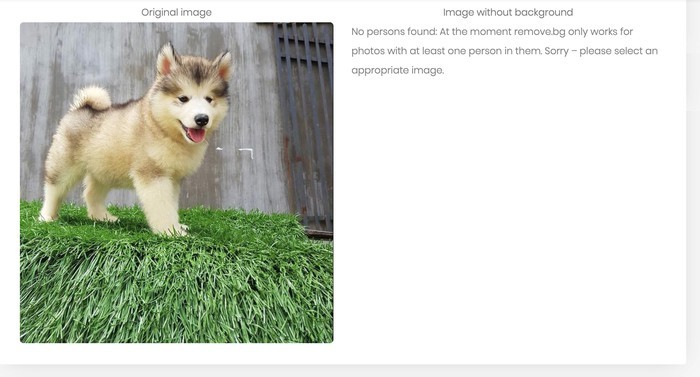 Hiện tại, trang web này chỉ tách nền những bức ảnh có chủ thể là người. Đối với một số thú cưng thì remove.bg sẽ không xác định được chủ thể.