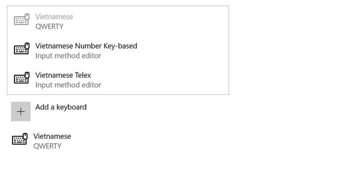 Windows 10 đã được bổ sung kiểu gõ Vietnamese Telex và Vietnamese Number Key-based (VNI) trong bản cập nhật May 2019.