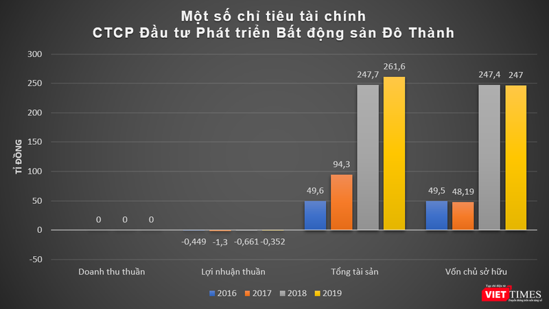 Do vẫn trong quá trình đầu tư và phát triển dự án nên Đô Thành chưa ghi nhận doanh thu. Trong giai đoạn 2016 - 2019, công ty này báo lỗ thuần vài trăm triệu đồng mỗi năm, cao nhất là năm 2017 lỗ thuần ở mức 1,3 tỉ đồng.
