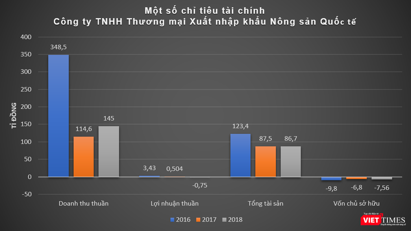 Dữ liệu của VietTimes cho thấy, trong giai đoạn 2016 - 2018, Nông sản Quốc tế có kết quả kinh doanh chưa thật sự tốt, biên lợi nhuận ở mức rất mỏng. Như năm 2016 và 2017, công ty này ghi nhận doanh thu thuần đạt lần lượt 348,5 tỉ đồng và 114,6 tỉ đồng, báo lãi thuần 3,43 tỉ đồng và 504 tỉ đồng, tương ứng với biên lợi nhuận 0,44% và 0,98%.
