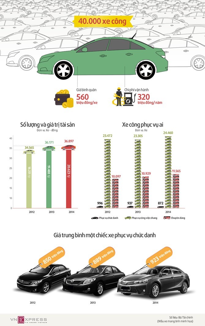 Số xe phục vụ cho các chức danh lãnh đạo có xu hướng giảm trong những năm gần đây, song giá bình quân mỗi chiếc lại tăng lên.
