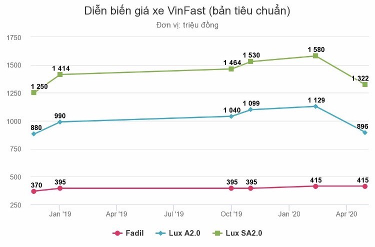 Công bố giá mới trong tháng 5/2020 là lần điều chỉnh giá thứ 5 của VinFast trong khoảng gần một năm rưỡi qua, bắt đầu từ 20/11/2018. Trái với 4 lần tăng giá liên tiếp trước đó, lần này hãng giảm giá.