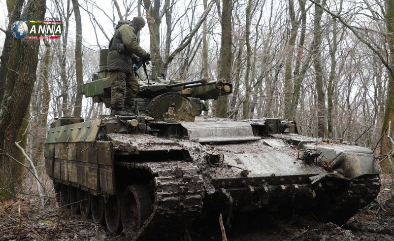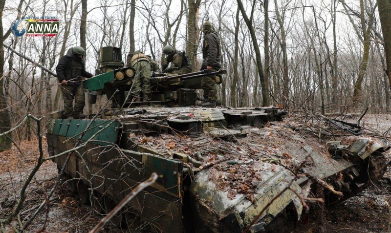 Ảnh video ANNA News xe thiết giáp yểm trợ hỏa lực xe tăng. |