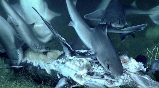Nhóm nghiên cứu nhận thấy, con cá dường như chỉ mới chết được vài giờ. Tuy nhiên, thân xác con cá đã không còn nguyên vẹn với hàng trăn vết cắn xé. Trong bữa tiệc thịnh soạn ấy có hai loài cá mập đó là Squalus clarkae (Genie's dogfish) và Roughskin dogfish. Đây là hai loài cá mập hiếm gặp và thường chỉ xuất hiện ở độ sâu từ 216-610 mét dưới đáy biển.