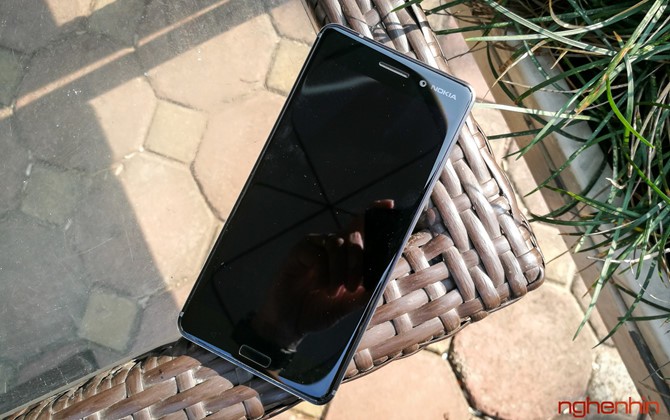 Mặt trước máy bóng bẩy với mặt kính 2,5D phủ trên màn hình 5,5 inch độ phân giải full-HD (1.920 x 1.080 pixels). Màn hình này hiển thị chi tiết tốt, độ sáng khá ổn ngay cả khi hoạt động ngoài trời, dù vẫn bị hiện tượng bóng. Phía trên màn hình có loa thoại, cảm biến, camera trước và lô-gô Nokia 6. Hai phím điều hướng và nút Home tích hợp cảm biến vân tay nằm ở ngoài màn hình. Cảm biến vân tay dạng 1 chạm cho phép mở máy từ trạng thái màn hình tắt, tuy nhiên trải nghiệm thực tế không nhanh bằng một số đối thủ cùng tầm giá.