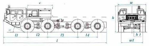 Ở hai bên của đầu xe là hai cabin ghế kép, được chế tạo bằng nhựa polyester gia cố bằng sợi thủy tinh. Chỗ ngồi trong cabin được đặt song song. Các bánh xe tên lửa đều là bánh chủ động, với một hệ thống điều chỉnh áp suất không khí trong lốp xe. Cặp bánh đầu tiên và thứ hai của xe là bánh lái. Tất cả các bánh xe có hệ thống treo giảm xóc độc lập.