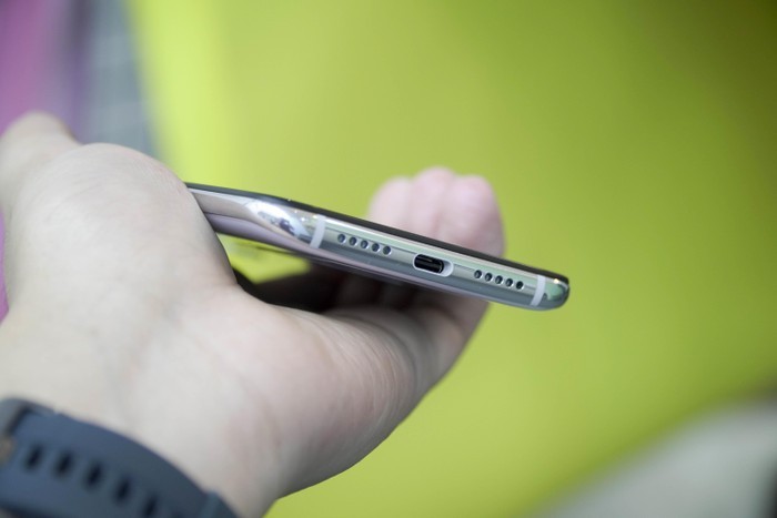 Cạnh đáy của máy chứa loa ngoài và cổng sạc. Giắc cắm tai nghe 3,5 mm được đặt ở trên đỉnh máy.