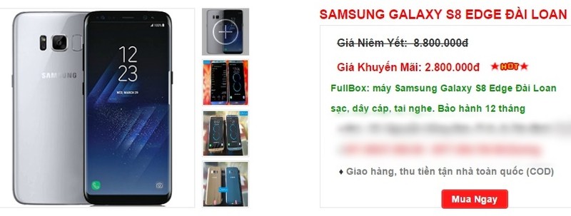 Ngoài ra, nhiều địa chỉ kinh doanh trên mạng còn sử dụng hình ảnh của chính những chiếc Samsung Galaxy S8 thật để quảng cáo.