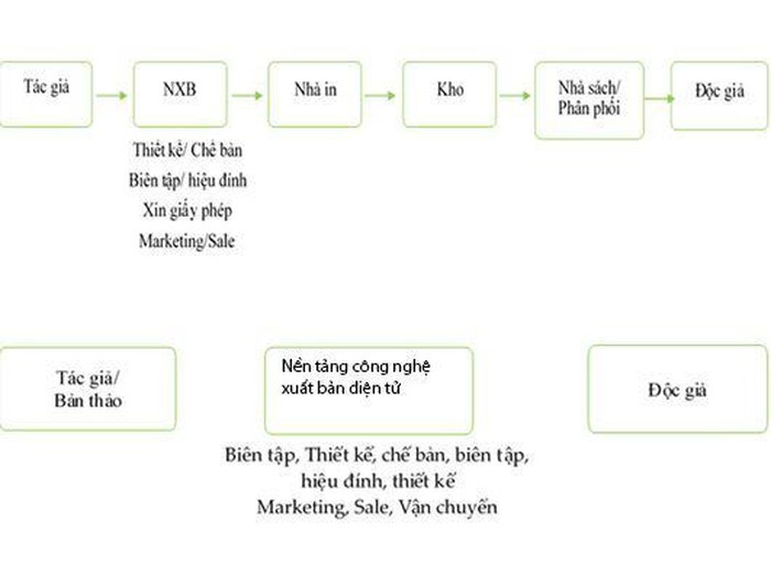 Sơ đồ xuất bản truyền thống (trên) và sơ đồ xuất bản công nghệ.