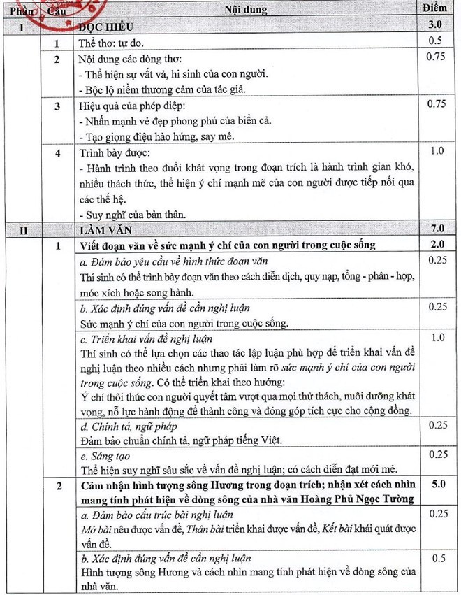 Đáp án môn Ngữ văn của Bộ GD&ĐT