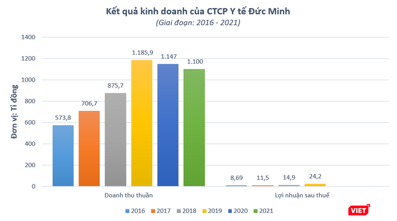 Đáng chú ý, giai đoạn 2019 - 2021, Y tế Đức Minh đều ghi nhận mức doanh thu nghìn tỉ đồng, tăng vọt so với giai đoạn 3 năm trước đó.