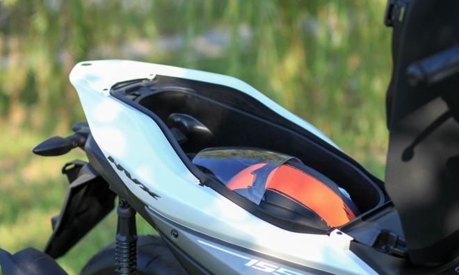 Hộc chứa đồ dưới yên xe có khả năng chứa mũ bảo hiểm cả đầu và nhiều vật dụng cá nhân khác.