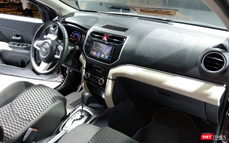 Những trang bị nổi bật được tìm thấy Toyota Rush gồm hệ thống điều hòa tự động 2 giàn lạnh, nút bấm khởi động, cụm đồng hồ với màu sắc bắt mắt, hệ thống giải trí với màn hình cảm ứng 7 inch tích hợp camera lùi và có cổng kết USB/AUX/Bluetooth/Wifi. Tuy nhiên, nó lại không có tính năng kiểm soát hành trình Cruiser Control như trên Xpander.