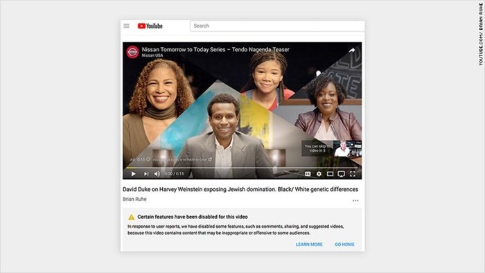 Đoạn video có tên "David Duke vạch trần sự thống trị của người Do Thái" xuất hiện trên quảng cáo của xe Nissan.